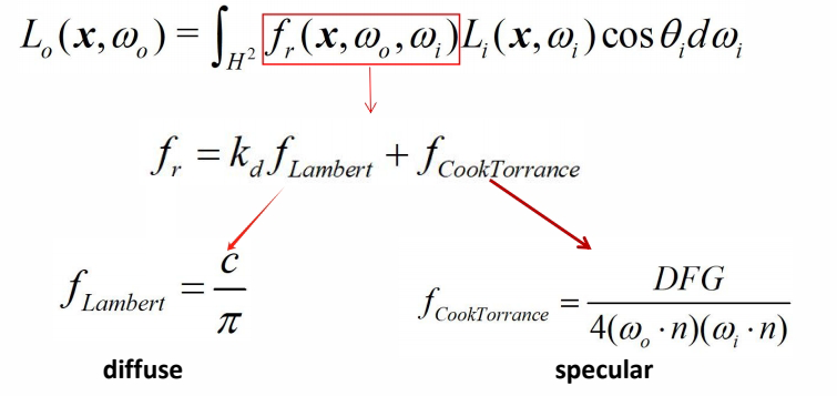 diffuse:漫反射与 Bling Phong 类似,简化成常数。specular:高光,比 Bling Phong 要复杂,其中 D 项与之类似。