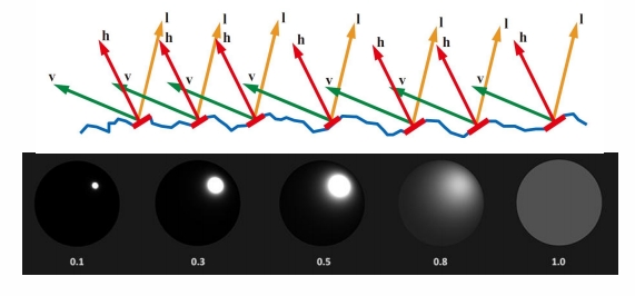 - 当微表面的法线方向比较集中,材质就类似于glossy