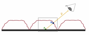 Parallax Mapping: Due to the height of the surface, the eye sees point B instead of point A. It creates a sense of dimensionality