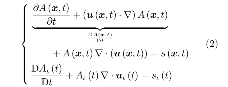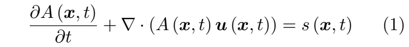 公式 (1) 表明,在固定位置处任何物理属性的变化率 ∂A/∂t 取决于 Au 通量所带来的变化以及源项 s 的贡献。
