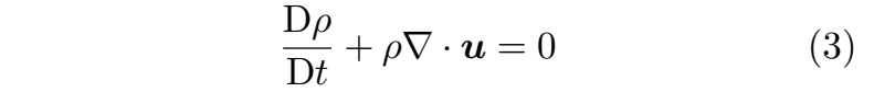 在封闭系统中,流体的质量随时间保持守恒。该原理由连续性方程(公式(1))表示。令 A 为流体密度,并设 s ≡ 0,则公式(1)可改写为: