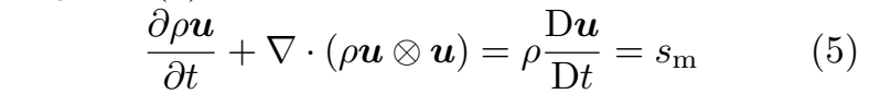 其中 sm 是改变各流体微团速度的动量源项,符号 ⊗ 表示外积运算。在此基础上,黏性可压缩流的纳维-斯托克斯动量方程基本形式进一步将 sm 具体表述为三个独立项: