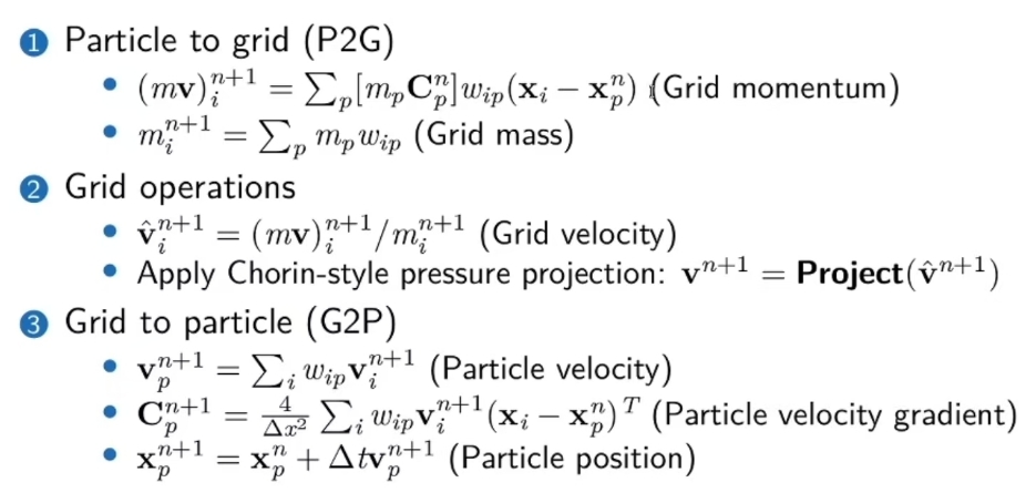 ✅ Hybrid 方法:MPM = Particle + Grid,兼容二者优点,常用于模拟雪或粘滞物体