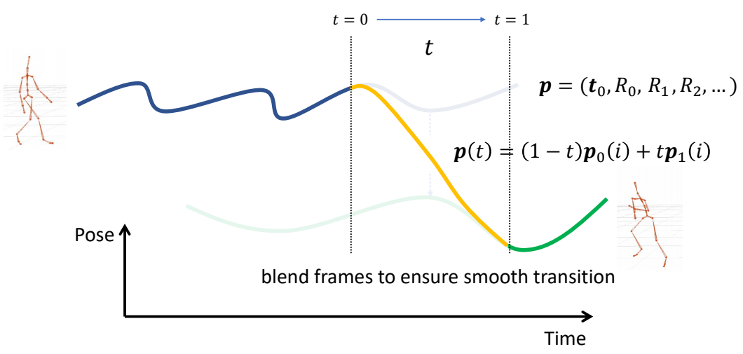 ✅ 对Motion Graph的改进,比如一个节点中有很多动作,对这些动作进行插值,来实现精确控制。
