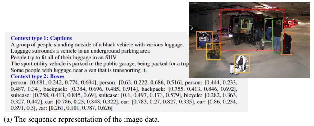 Instead of directly feed images into OpenAI GPT, we use their symbolic sequence representations shown in Figure 12 (a). In LLaVA, the caption and boxes are considered, due to the following