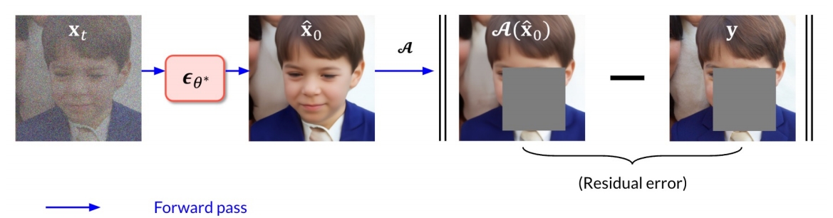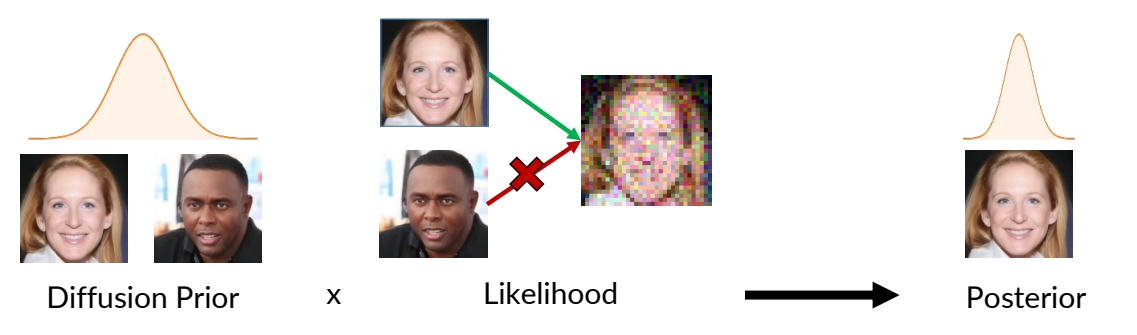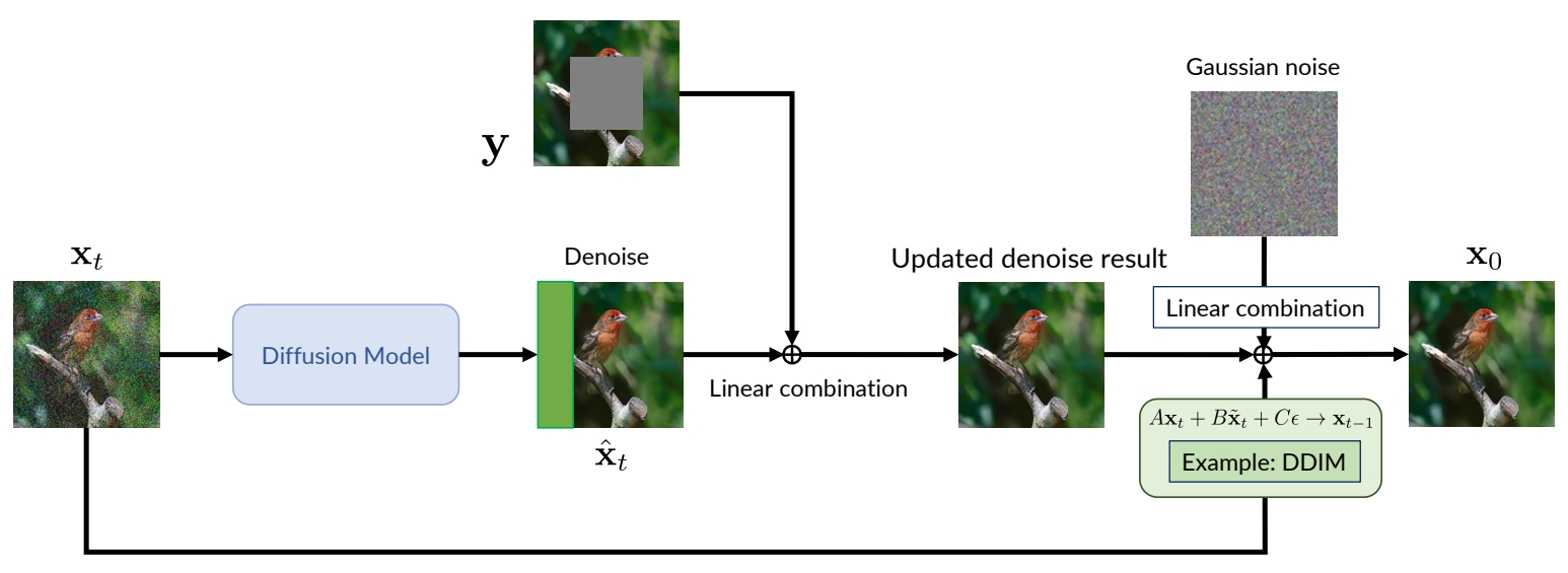 基于某个预训练的diffusion model,在无condition的情况下,每张图像都符合diffusion生成模型的分布。当以某个特定的图像(模糊图像、低分辨率图像)时,期望能够得到的是对应的清晰、高分辨率的图像的分布。