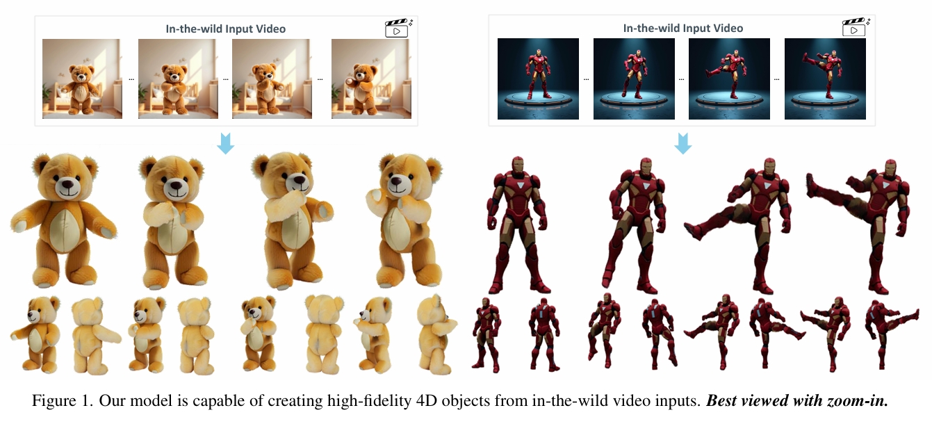 3)基于MV-VDM,我们引入结合重建技术与4D分数蒸馏采样(4D-SDS)的框架,利用多视图视频扩散先验实现3D对象动画。